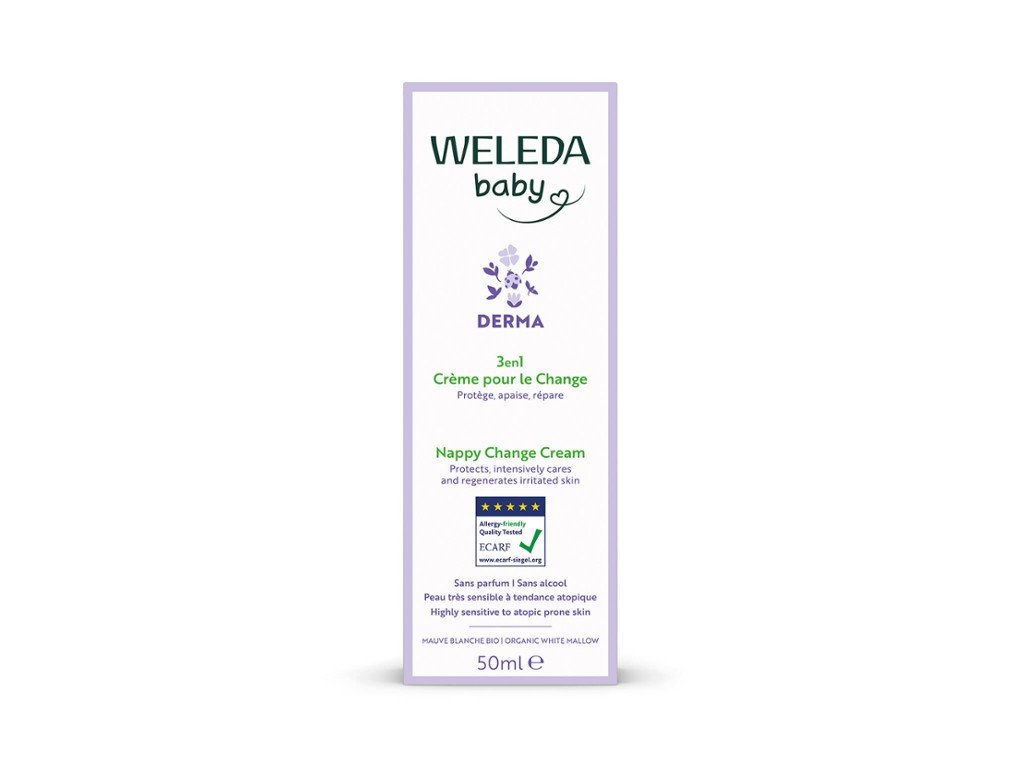 Naneste na čistou a suchou pokožku při každém přebalování. Vhodné i pro prevenci podráždění a zarudnutí. Péče o velmi citlivou a atopickou pokožku si žádá komplexní přístup. Pro ještě lepší účinek kombinujte tento produkt s dalšími přípravky z řady Weleda Baby DERMA: • 3v1 DERMA Mycí balzám – jemně pokožku čistí, aniž by ji vysušoval. • 3v1 DERMA Hydratační mléko –dlouhodobě hydratuje a posiluje kožní bariéru. • 3v1 DERMA Zklidňující SOS krém – okamžitá pomoc při svědění způsobeném suchostí pokožky.