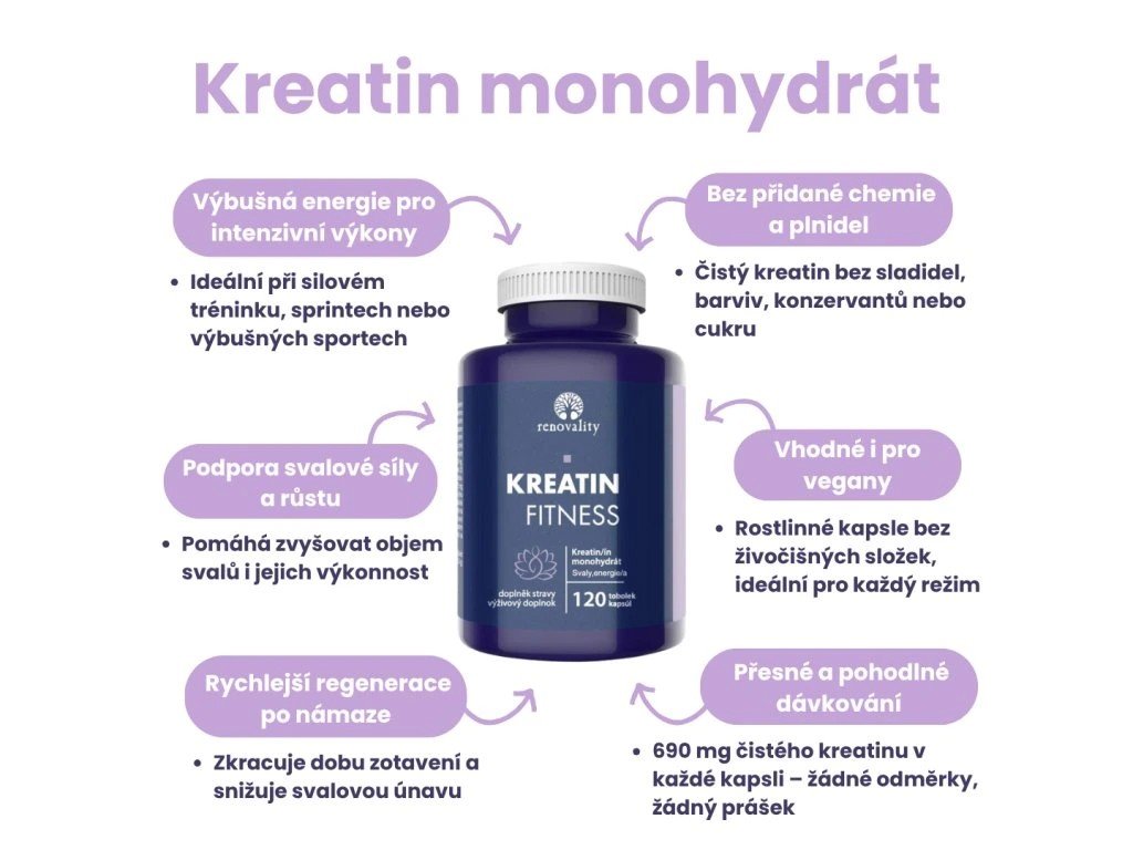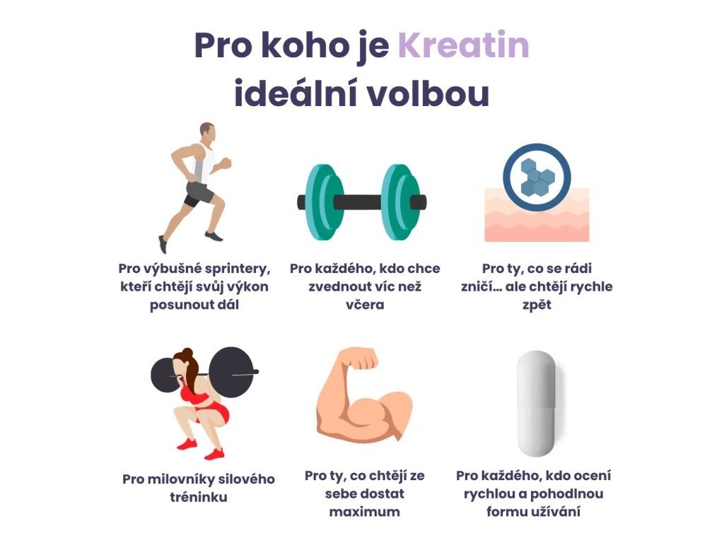 Tato vědecky ověřená látka se přirozeně nachází ve svalové tkáni a funguje jako zásobárna energie během krátkodobých a intenzivních výkonů. Suplementace kreatinem pomáhá zvyšovat výkon, podporuje rychlejší regeneraci a přispívá k růstu svalové hmoty.