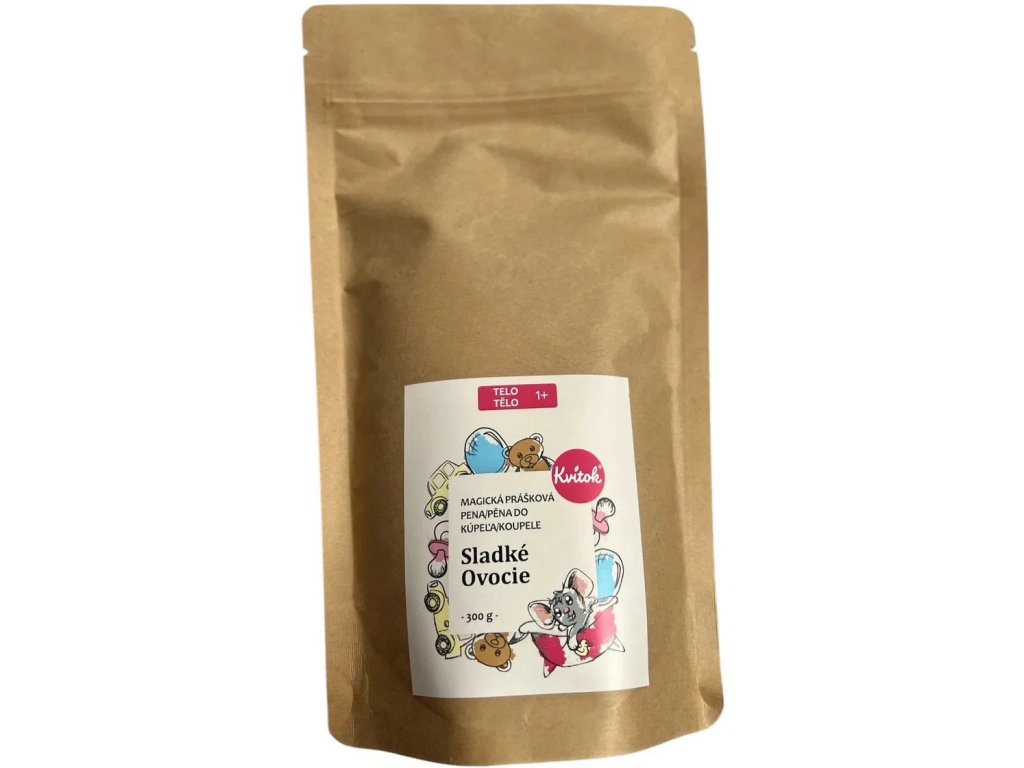 Tento produkt je speciálně vyvinut tak, aby byl šetrný k citlivé dětské pokožce, bez agresivních složek. Koupel také pomáhá dětem uvolnit napětí, podporuje relaxaci a zlepšuje spánek, což je ideální po náročném dni. Příjemná vůně a bohatá pěna mohou děti zabavit a udělat z koupání zábavný zážitek. Hlavními složkami jsou jedlá soda a kyselina citronová, jejichž kombinací vzniká šumění, což pomáhá vytvářet pěnu. Bublinky zajišťuje jemný rostlinný tenzid z kokosového oleje – SLSA (Sodium Lauryl Sulfoacetate). To je jemná čisticí a pěnivá složka, která je ideální pro citlivou pokožku. Epsomská sůl bohatá na hořčík a síran je dokonalým společníkem pro relaxační koupel. Příjemnou vůni dodávají rostlinné extrakty malin a třešní.