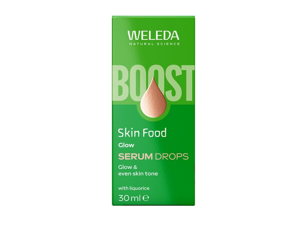 Skin Food Glow Serum Drops dodává pleti okamžitý jas, zdravý vzhled a sjednocený tón. Spojuje rozjasňující pigmenty s aktivními rostlinnými složkami pro svěží, přirozeně zářivý efekt během několika vteřin. Extrakt z lékořice a listů ječmene působí antioxidačně, zklidňuje a pomáhá redukovat pigmentaci. Minerální pigmenty pleť opticky projasňují. Sérum hydratuje a chrání před oxidačním stresem. Lehká textura se rychle vstřebává a umožňuje multifunkční použití – samostatně, s krémem nebo jako rozjasňující booster do make-upu.