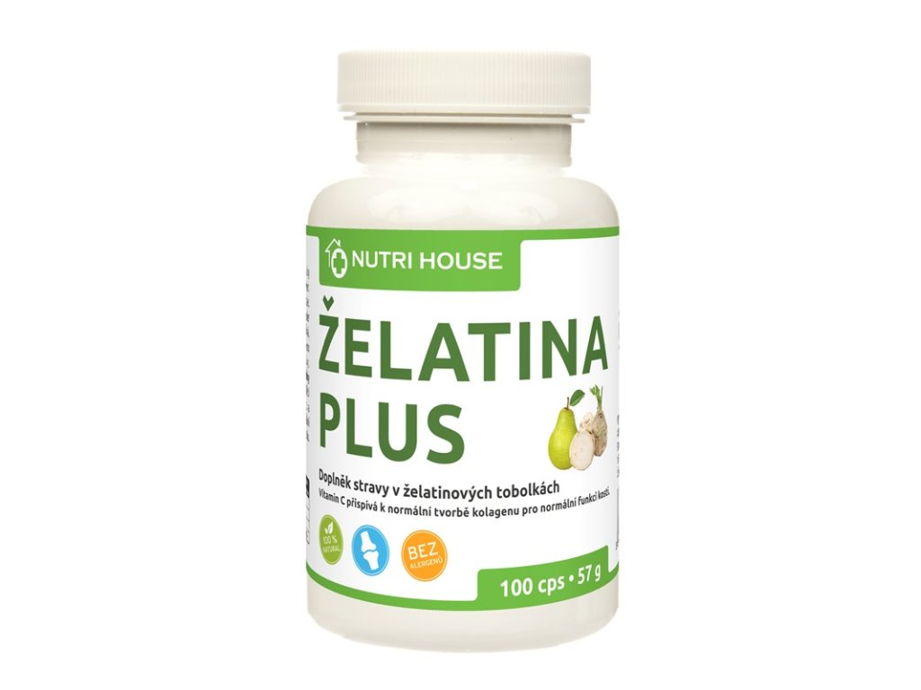 Složení: Hydrolyzovaný kolagen, sušený celer (bulva), sušené hrušky, kyselina askorbová, želatinová tobolka.